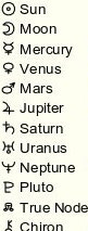 You’ll also notice various glyphs scattered throughout your chart. Each glyph represents a different planet in your chart.